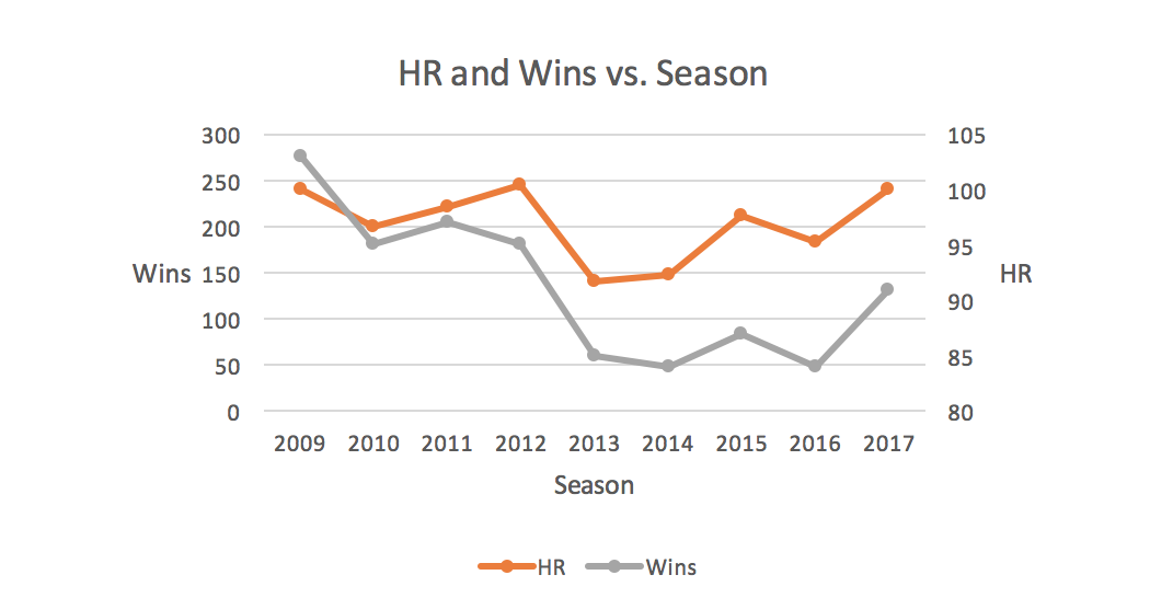 As the graph above indicates, it seems as if the number of home runs the Yankees hit has pretty strongly correlated with the team’s success, and it appears we could see a similar trend in 2018.
