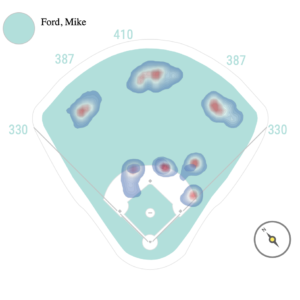 Not only did LeMahieu have great plate coverage, but he also sprayed the ball all over the field. He was shifted on a total of zero times (league-average was 17.4 percent of the time). Of Yankees who had at least 100 plate appearances in 2019, Mike Ford had the highest rate of shifts put on him at 76.3 percent. The top chart is for LeMahieu, the bottom one is for Ford.