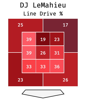 The average line drive percentage across the majors in 2019 was 25.5 percent. LeMahieu’s overall rate was 29.9 percent, and you can see that even on balls out of the zone he was still hitting line drives at a decent clip.