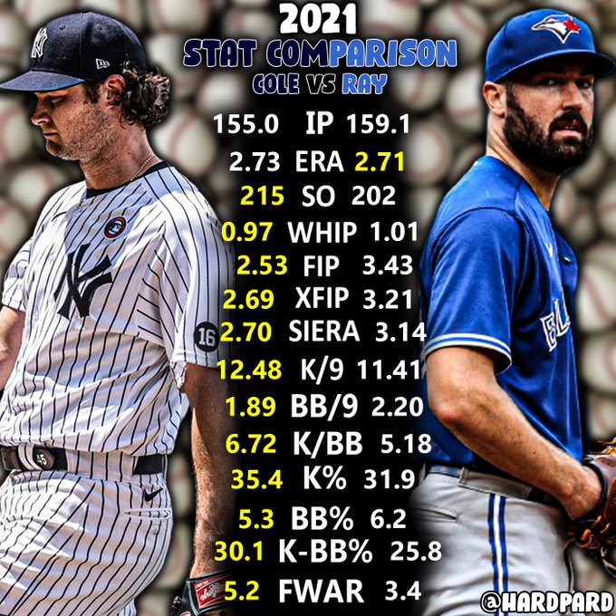 Cole is leading in these, but he's also leading sizably. His lead in WAR over Ray is almost two wins. FIP and xFIP are both nearly a run. xERA Cole leads by 0.6. The only stat Cole trails in, he trails Lynn and even that is a razor-thin 0.09.