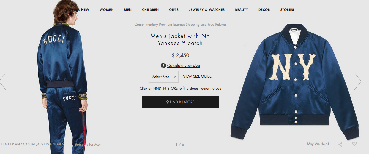 No other team can sell an ugly 2 grande Gucci jacket for corny trust fund kids like this. That's how rich the Yankees are.