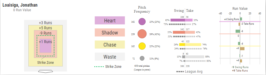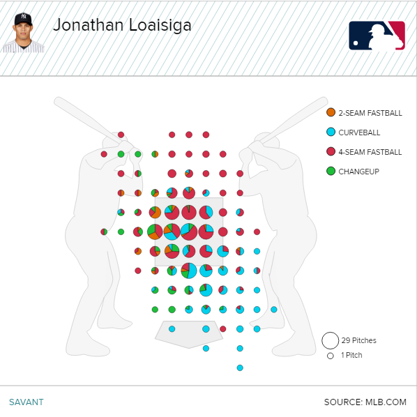 Once again, the issue for Loaisiga appears to be his command. This visual shows his success based on pitch location: