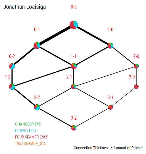The easiest way to see improvement from Loaisiga is better command. However, I think there’s another factor at play here. Loaisiga is very predictable both when he throws his pitches and where.