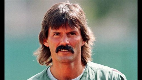 What really puts these uni's over the top are the hats. The black pillbox style hats with yellow horizontal stripes were in style at the time. Now they are ironic, but still magnificent. Baseball Academy Award for Best Makeup and Hairstyling Nominations: Coco Crisp's afro Rollie Fingers' mustache Dennis Eckersley's flow Bryce Harper's hair flip Winner: Dennis Eckersley This is without a doubt the strongest category. All of the contenders have something to offer. Coco's afro never failed to make me laugh. Rollie Fingers grew his mustache for a $300 bonus but then kept it and formed the "Mustache Gang." Bryce's hair flip is going to look so damn good in the Bronx. But none of these compare to Eck's flow and mustache combo because he is still rocking the same style today. Seriously, the dude is stuck in the 80s. These two pictures were taken about 30 years apart: