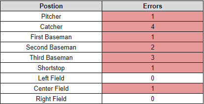 In the past, the Yankees have prided themselves on having a defensively sound team. But in the early going, it appears the team has left defense behind. Through 15 games this season, the Yankees have 13 errors (.975 FPCT), ranking 24th in all of baseball. Before we divulge any further, let's break down which positions the errors came from on the diamond: