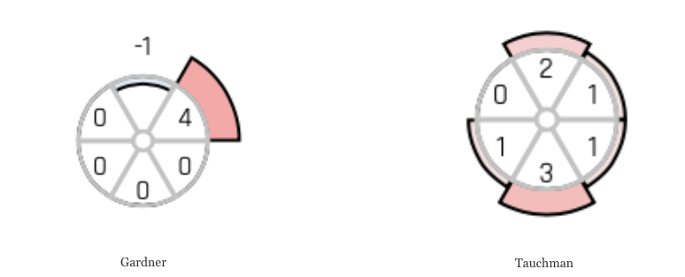 Tauchman has a more well-rounded jump in all directions. The numbers in the slices represent outs above average (OAA).