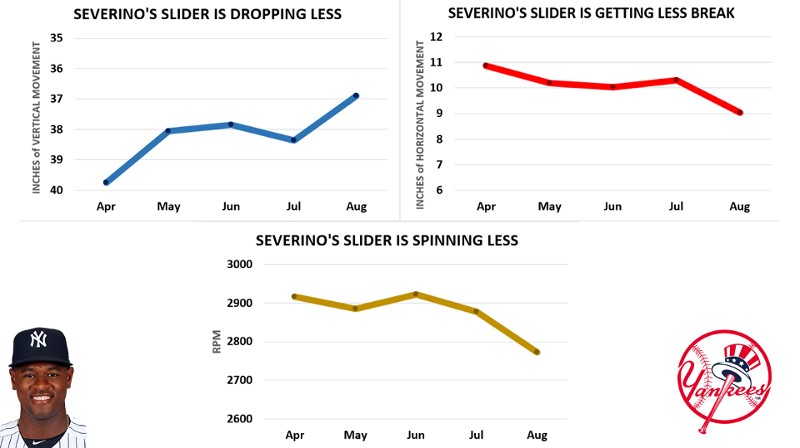 All of those changes make the slider less effective, and in turn make it easier to hit Severino’s fastball.