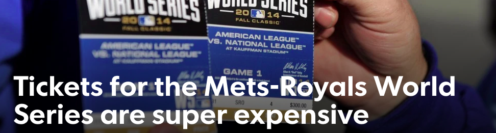 You're obviously not going to get playoff tickets for under $23 but this is America. Tell me what major sporting event has affordable playoff tickets in a major city? If you look at the 2015 World Series, for example, you'll see that a small-market team in the Royals and the alleged cheap alternative to the Yankees forced fans to spend an exorbitant amount of money. Look at this headline from USA today back in 2015:
