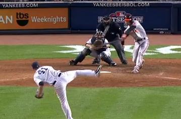 In following his other fellow starting pitchers, Phil Hughes gave the Yankees a quality outing. In 6.2 innings, Hughes was hurt by just one thing, the one flaw in his game, the home run. In the 5th inning, outfielder Nate McLouth led off the inning with a home run but it didn't phase Hughes as he proceeded to strikeout the next 3 to follow. Hughes would get 2 more outs before exiting the game and the bullpen to follow Hughes kept the game tied. Boone Logan would finish off the 7th inning and David Robertson had a clean 8th inning. Rafael Soriano pitched 2 innings and in the 9th inning, Soriano picked off pinch-runner Lew Ford to assist in extending this game. In the 11th inning, Joba Chamberlain had a quick inning but the 12th inning did not go as well. The first batter that Chamberlain faced was catcher Matt Wieters who hit a broken bat single into left field but the startling thing was that the broken part of the bat stuck Joba Chamberlain on the mound. Despite some warm-up tosses following the injury, Chamberlain would leave the game and David Phelps would take over to finish the inning. In the 13th inning, A lead off double and a ground out would put the eventual go-ahead run on 3rd base. J.J. Hardy hit a double into left field to put the Orioles ahead before Clay Rapada and Derek Lowe would combine to finish off the 13th inning. The pitching is clearly doing an outstanding job this entire series.