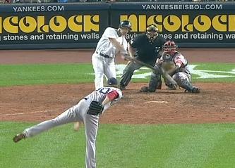 The Yankees offense struggled in tonight's game. Eduardo Nunez came through in the 2nd inning with a run-scoring single as he came through with runners in scoring position. Until the 9th inning, the Yankees struggled, especially Mark Teixeira. In Teixeira's first 2 at-bats, he hit into 2 double plays instead of capitalizing on 2 good opportunities to score runs. With the Yankees down by 2 and with 1 on base, Raul Ibanez came in as a pinch-hitter and hit a 2-run home run into right field and tied the game. The Yankees had a chance to end the game in the 9th when Alex Rodriguez loaded the bases with a walk. Mark Teixeira couldn't come through again as he flew out to center field and Robinson Cano grounded out to end it. A pair of walks in the 12th inning would prove to be the turning point. With 2 on and 2 outs, Raul Ibanez came through yet again with a game-winning single to end the game and put the Yankees within 1 win or 1 Baltimore loss to clinch the American League East.