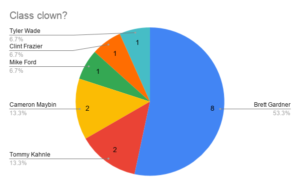 Another question that got mixed results. As just said, Tommy Kahnle surely is up for anything. Tyler Wade is probably your stereotypical frat guy. Meanwhile, I feel like Judge and CC would be on the calmer side, but you know you’re going to have a good time.