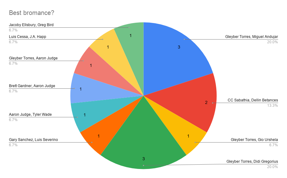 Last but not least we have the best bromance. Once again we received a lot of answers, but two pairs came out on top: Gleyber Torres/Miguel Andujar and Gleyber Torres/Didi Gregorius.