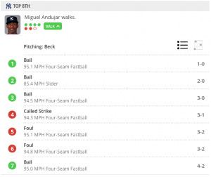 Andujar’s patience at the plate forced Chicago White Sox starting pitcher Carlos Rodon to give him something that he could hit and the young hitter capitalized on the pitch. Andujar, who primarily plays third base, filled in as the designated hitter for the night in the Yankees’ victory. An injury-riddled lineup was given a jolt with the presence of Andujar as the Yankees were able to score 12 runs on the White Sox. The at-bat that impressed me the most about Andujar was his walk in the top of the eighth inning. The young hitter got ahead in the count 3-0 but pitcher Chris Beck battled back to level it at 3-2. Andujar fouled a couple of pitches off before drawing a walk on the seventh pitch of the at-bat. Plate discipline is something many hitters lack in the majors, and for Andujar to show the ability to lay off of pitches that look appealing is a tremendous sign for the Yankees.