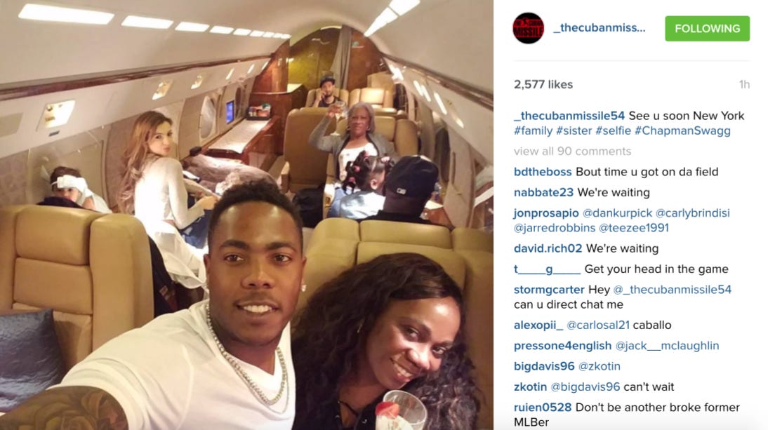 Although he won't be an active member of the Yankees until Monday when the Royals come into town, Chapman and his family boarded a plane in Tampa Saturday night bound for NYC. Chapman is scheduled to speak with reporters on Sunday at 4 pm ET.