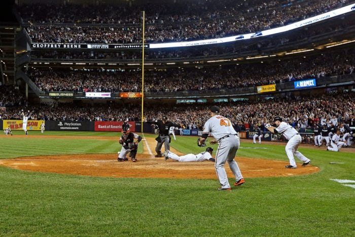 Richardson beat the throw home from Orioles right fielder Nick Markakis to give Jeter a walk off hit and a storybook ending.