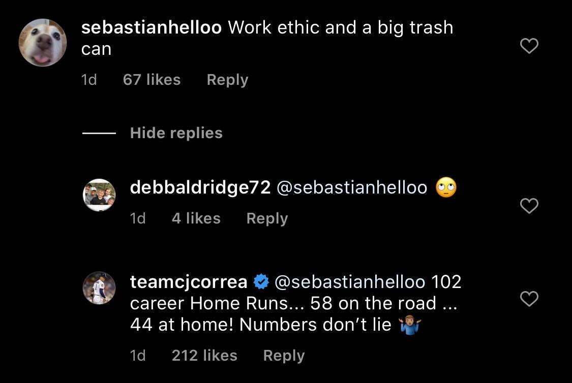 “The commissioner came out with a report, MLB did their report and the Astros did what they did. They made their decision on what they're going to do.” That was the sentiment repeatedly stated by Bregman. Maybe they were told not to comment — makes at least some sense. But why, then, did Altuve ramble on, saying how they were going to be right back in the World Series in 2020? Zero apologies, zero remorse. Correa took it Instagram, replying on one of his own photos: