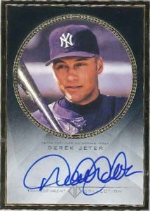 Do you collect baseball trading cards? If so, be prepared to look for some new exclusive Derek Jeter content in the near future. On Tuesday afternoon, the Topps Company announced that they have signed Jeter to a multi-year autograph trading card deal. The Captain's autographed cards return to Topps products for the first time in over a decade. This is a huge announcement for Topps, who is the official trading card partner of Major League Baseball. Here's are two of the cards that will be released as part of the collection.