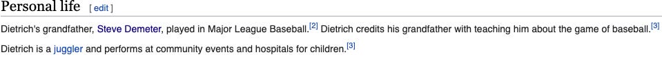 All I knew about Dietrich before today is that he can be viewed as cocky, gets hit with a lot of pitches, and recently can't bat above .200, but that was until I got to his "Personal Life" on Wikipedia.