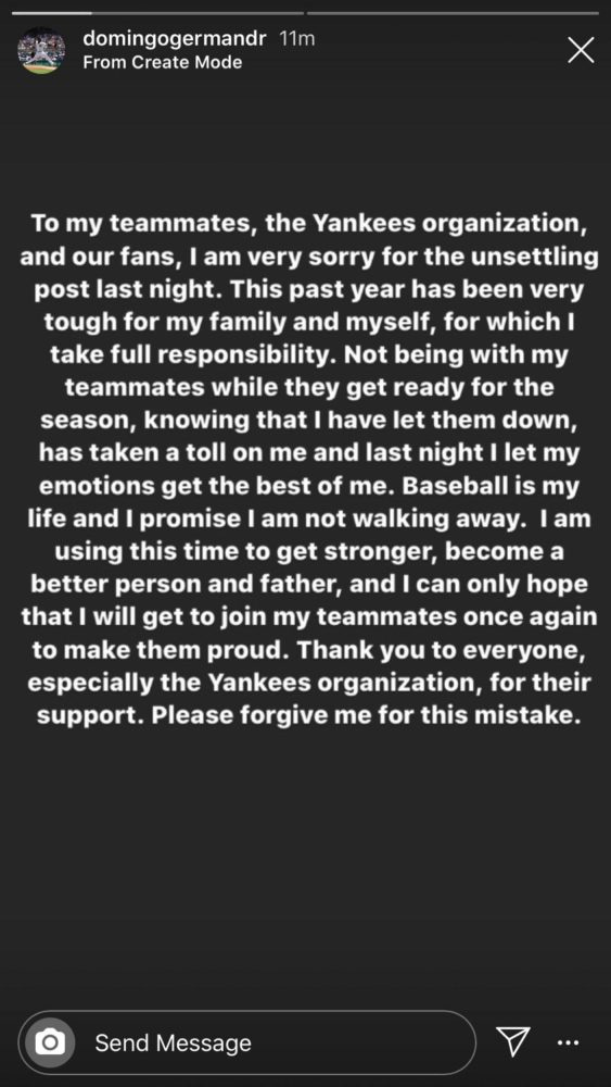 On Friday night while the Yankees were playing an intrasquad game, Domingo German posted a cryptic message on his Instagram that indicated he was walking away from baseball.
