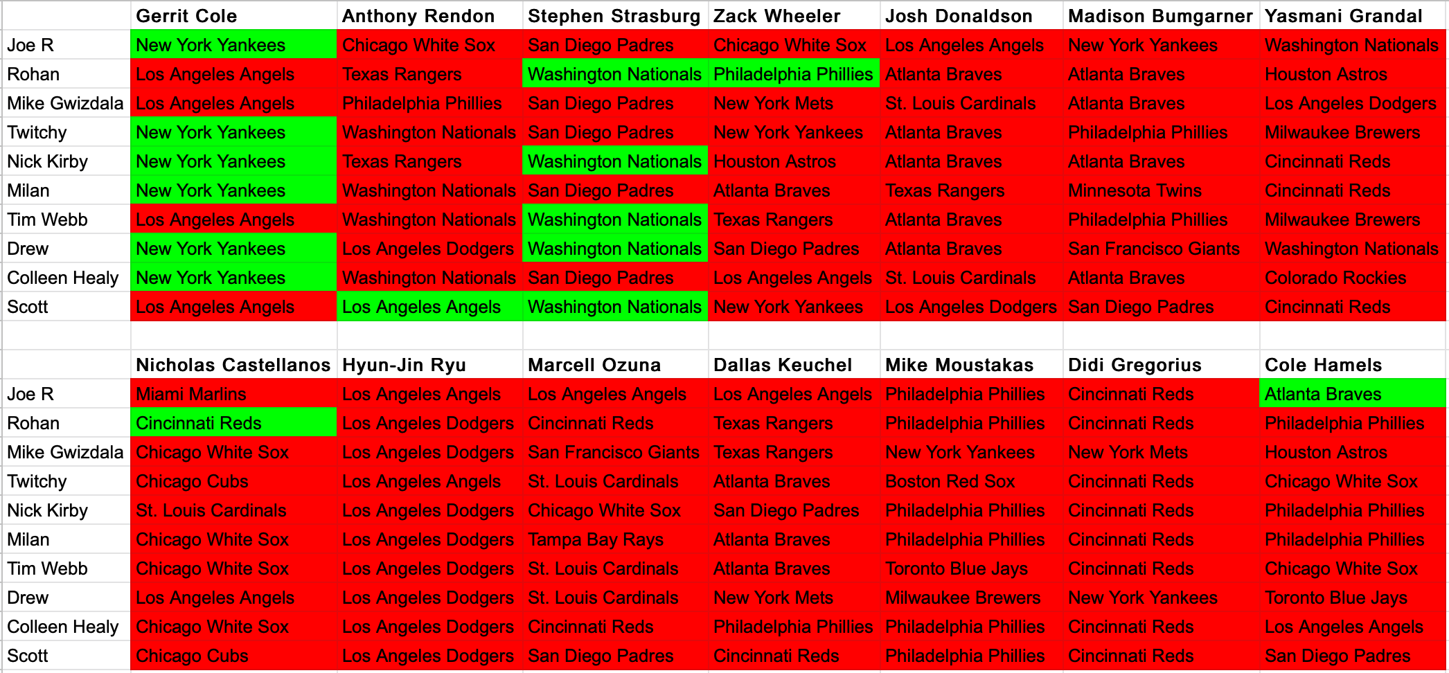 Congratulations to Rohan who got the most right with three! Three out of fourteen equates to a .214 batting average. As a group, we were 15/140 (.107). If you take away Gerrit Cole (since most of us predicted him to the Yankees, most definitely wishing it into existence), we were 9/130 (.069). Sure that may seem bad, but who uses batting average nowadays? I’m sure if you took a deep dive into the more advanced metrics, we would have done pretty well. For example, our PAR (predictions above replacement) could put us at an all-star level.
