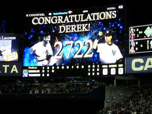 On April 29, 1939, Lou Gehrig stepped into the box for the 2,129th consecutive game. It was the fourth inning against the Washington Senators with 11,473 fans scattered throughout Yankee Stadium. The Iron Horse was breaking down and he didn't know why. He was now batting fifth in the order, his average sat at .143, and Joe DiMaggio was the superstar on the team. Gehrig stood in against Ken Chase for his second at bat after working a walk in the second inning, and hit a single. That was it. No standing ovation, no acknowledgment by the announcers, no grand scene. He simply stood on first base having just collected his 2,721st and final hit. The next day, he went 0-4 and the whispers began to swirl. Many thought he should be benched, and there were rumors of disgruntled teammates doubting they could win with him hitting so poorly. The team traveled to Detroit, and Gehrig made the call to bench himself. This would end his streak of 2,130 consecutive games played, and meant that the lone single he hit in a seemingly meaningless April game would be his last. His 2,721 hits stood as the Yankees record for 70 years until another 35-year-old captain surpassed his mark, also with a single. On a rainy September night in 2009, Derek Jeter's 2,722nd hit skipped passed the bag that Gehrig manned for 17 years and he passed the Iron Horse. "I can’t think of anything else that stands out more so, and I say that because of the person that I was able to pass,” Jeter said. "Lou Gehrig, being a former captain and what he stood for, you mention his name to any baseball fan around the country, it means a lot."