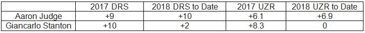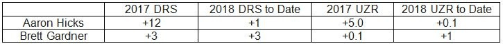 The above numbers are why the Yankees have a defensive advantage in the outfield when playing most teams. This concludes the Yankee outfield defensive check-in. We’ll revisit these numbers later in the season to see where everyone is at.