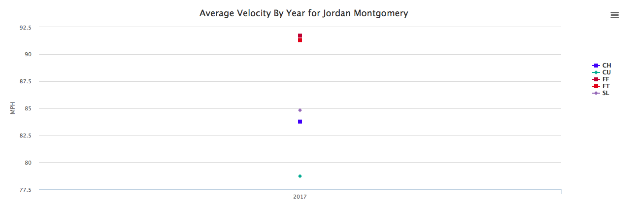 The fact that Montgomery’s fastest pitch reaches about 93 MPH while his slowest pitch tops out at about 75 MPH makes him very hard to gauge from the batter’s box. If he continues to keep hitters off balance with his bevy of different pitches, look for Montgomery to be an integral part of this Yankees’ rotation in less than a year.