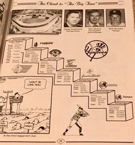 This was in the summer of 1994, the last year the Yankees housed their Double-A prospects in Albany. During the strike in August 1994 "Stick," manager Buck Showalter and pitching coach Billy Connors were scouting the Albany-Colonie Yankees and sitting in box seats behind home plate at Heritage Park.