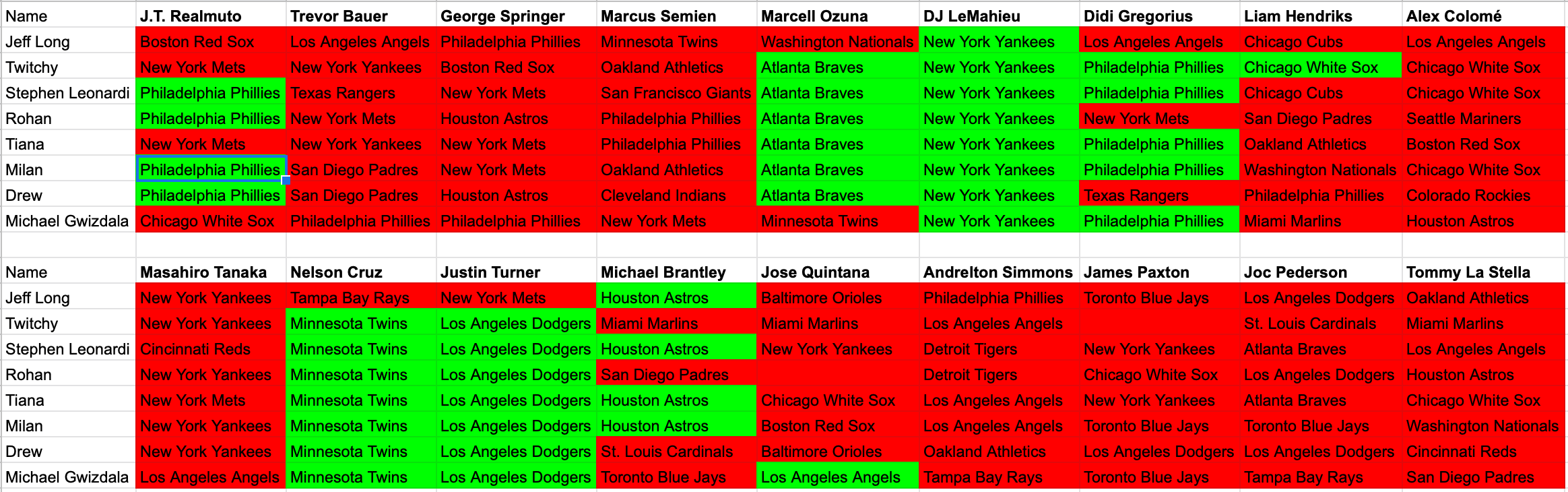Of the 18 free agents we predicted, we got nine of them all wrong. We made our money on players such as LeMahieu, Cruz, and Turner -- guys who were expected to return to their current teams.