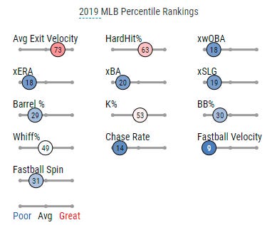 He accrued most of his ugly early-career numbers as a member of the 2019 Yankees. Nestor wasn't a memorable member of that 103-win club, but he threw 66.2 innings over 32 relief appearances and one start. He posted a 5.67 ERA that season with 16 home runs allowed. His 2.2 HR/9 was the second-worst in MLB among qualified relievers. The Statcast percentile rankings weren't pretty: