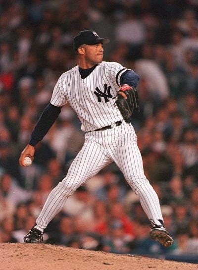 Mo in 1996. Credit: Al Bello/Allsport Seeing Rivera in the eighth setting it up for someone else to save brought back some of my first memories of baseball. Rivera to Wetteland for the win. In 1996, Rivera went 8-3 with a 2.09 ERA and struck out 130 in 107.2 innings. In 1995, he was relatively unknown - starting 10 games and going 5-3 with a 5.51 ERA. Then manager Buck Showalter would say years later that if he knew what Rivera was, he would have used him instead of Jack McDowell in that fateful Game Five against Seattle in the Division Series. I know the fairy tale would have been complete if Mo were to stand on that mound in ninth and shut the door on the National League. But it was kind of cool seeing him say goodbye to a national audience the same way he said hello. For me, it was a way to flashback to my childhood and remember the first time I really remember Mo pitching. In the eighth inning, classy, perfect - with a smile and without a complaint.