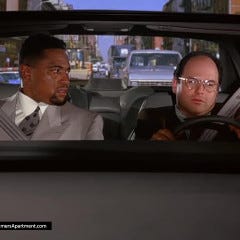 In his second appearance, while getting driven by George to a PBS pledge drive, they get cut off and flicked off, George thinks. George then drives an hour out of his way to give the driver a piece of his mind causing Danny to miss the fundraiser. While in the car, we learn just how fancy Danny is as he eats his doughnut with a knife and fork.