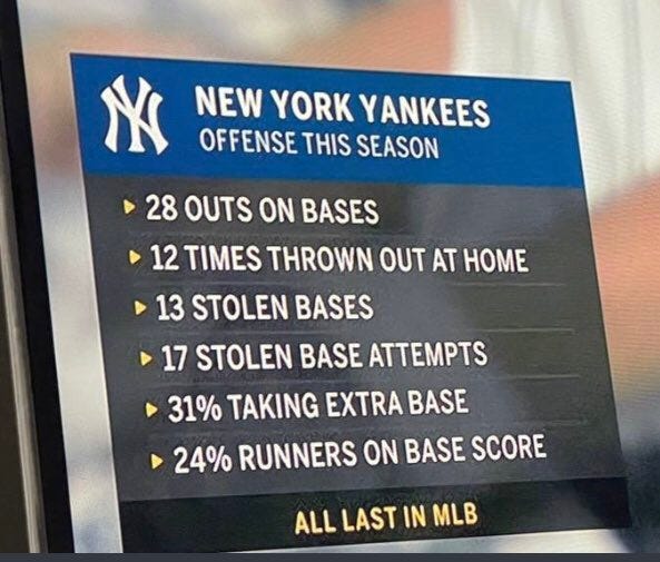 The Yankees hit for no power, too many double plays, and are terrible with RISP. I didn't even mention baserunning. They suck at that too.