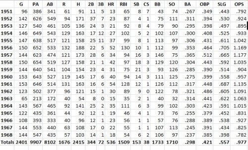 The Major Leagues had never seen a player like Mickey. He was 5-foot-11 and 195 pounds of pure muscle with a sprinter's speed. He was a player that could hit a 500-foot home run at one at-bat and lay down a drag bunt for a single in his next trip to the plate. Every swing he took was as if it was the last of his life. He had that speed despite suffering from Osteomyelitis, a serious infection in the bone and bone marrow, during his high school football career. Things only got worse in the 1951 World Series when he stepped in a drain in the Yankee Stadium outfield and tore the ligaments in his right knee. He was only 19-years old at the time, but in the days before arthroscopic surgery, an injury like that was debilitating for the rest of his life. In fact, he played his entire career after the '51 World Series with no ACL in his right knee. Despite the pain he endured for his entire career, his numbers were magnificent. His second year in pinstripes began a streak of 14 straight All-Star game appearances. From 1959-1962 that meant two All-Star games a year. He was also an All-Star selection in 1967-1968. Overall, Mickey was an All-Star in 16 of the 18 years he played. The 1950's were good to the Mick and the Yankees. They won pennants in eight of 10 seasons and captured six World Series titles. They went on to win the first five AL pennants in the 1960's and took home two more World Series trophies.
