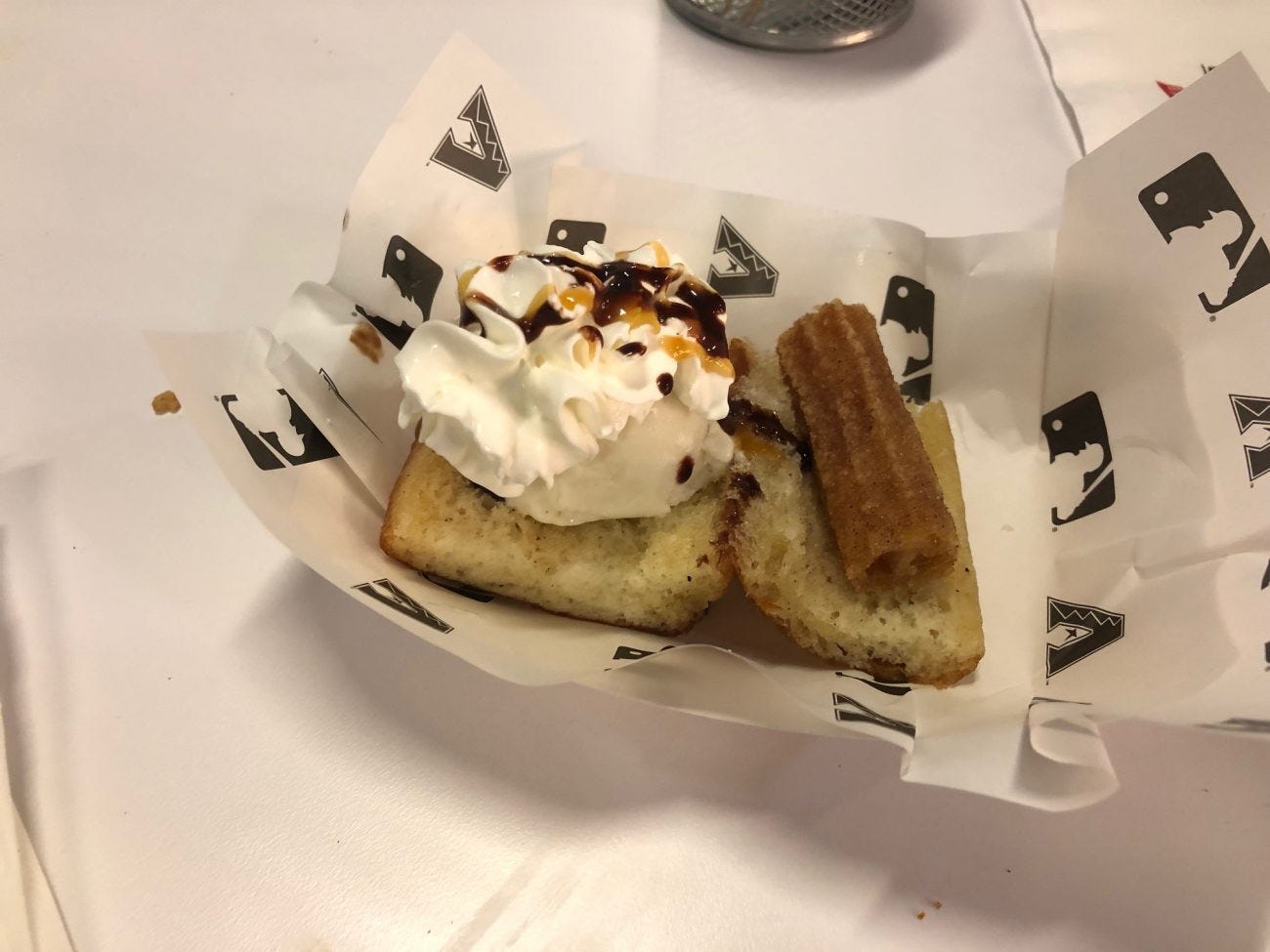 The Diamondbacks churro dog was one of the few dessert items, which instantly helped put in the top 5. After trying 17 different sandwiches (maybe slight exaggeration) I was ready for something new. And the combination of a churro with some kind of cookie, whipped cream, and chocolate sauce was pretty great. Would I want it every time at the ballpark? No. But it’s unique and good enough for the last spot in our top 5.