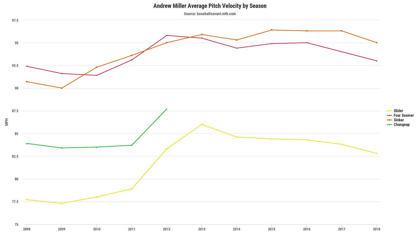 Miller was one of, if not the best reliever in baseball for the past five years. From 2013-2017, he had the second best K% (41.1) and K-BB% (33.7) of all relievers. Those stats indicate just how dominant he was. Unfortunately, 2018 was a different story. Miller struck out less than 30% of batters faced, and walked just over 10%.