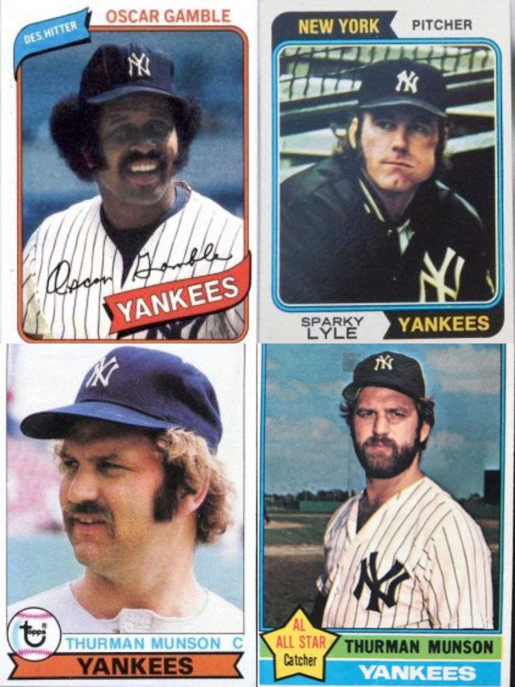 But throughout the 1970s, players pushed the limits. Team captain Thurman Munson grew a beard before the 1977 season but shaved, saying he didn't want to get Billy Martin in trouble. There are many other occasions in which players broke the rules, and they're usually documented on their Topps baseball cards.