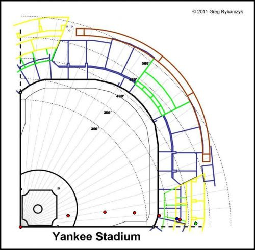 Aaron Judge is big and strong and can hit a baseball really, really far. That much we know. What we don't know about Judge can fill an entire blog or seven; for instance, will he even make the Opening Day roster? Can he find a way to make more contact? Will the new leg kick work? (I'm so sick of reading about Judge's leg kick). We all hope number 99 will be a mainstay in the Bronx, but there's still a lot of uncertainty. Assuming Judge does stick, the only question I have is, how far will the baseballs he hits travel in Yankee Stadium? We discussed Judge's adjustments and home run prowess on The Bronx Pinstripes Show earlier this week (17:25 mark). There have been some long home runs in the new Yankee Stadium's brief history. There have also been a lot of them thanks to the short(er) right field porch and wind tunnel that apparently dissipated after 2009. I used ESPN's home run tracker, which measures the true distance of home runs -- in other words, the distance a ball would have traveled uninterrupted all the way back down to field level -- to track the longest homers in the new Yankee Stadium history. It's a fun page to explore; you stumble upon fun facts like Giancarlo Stanton hit two home runs at least 490-feet last season, and claimed the longest shots at four National League ballparks. I mention Stanton because many compare Judge to the Marlins slugger. Both are huge, both are right-handed, and both have a propensity to strike out. While Judge didn't claim the longest home run at the Stadium last season, he did come close. In a very anticlimactic fashion, the longest HR at Yankee Stadium last season was off the bat of Steven Souza Jr. (there's a name for ya). Souza smoked a 461-foot dinger last September off Jonathan Holder to straight-away center field. About a month earlier, Judge debuted in the Bronx and hit his own blast -- 457-feet, to be exact -- off the black in center. Your browser does not support iframes. In only 27 games in the majors, Judge hit two home runs that appear on the 2016 Yankee Stadium leaderboard. The aforementioned HR on Aug. 16, and then a 443-footer on Sept. 12. 460-ish feet seems to be a magic number for Yankee Stadium home runs. It was the distance of Souza Jr.'s blast and the distance an Alex Rodriguez home run traveled in 2011, the longest of that season. Judge came dangerously close in a short span last year, and with a full season in the Bronx this year, should have ample opportunities to best 460-feet. The longest home run ever hit at the Stadium belongs to old friend Raul Ibanez, who was with the Phillies back in 2009 when he crushed this 477-foot 3-iron off Chien-Ming Wang. Your browser does not support iframes. Ibanez not only claims the longest home run in new Yankee Stadium history, but he is also the proud owner of a third-deck right field shot -- he and Russell Branyan are the only two to reach those heights. Your browser does not support iframes. Upper deck home runs were synonymous with the old Yankee Stadium. The sea of fans in the right field grandstands, which nearly hung over the field of play, provided a dramatic backdrop to some of the longest and most impactful home runs. Now, with multiple luxury levels and recessed third level seating, hitting a ball up there is next to impossible. If I were a betting man, though, my money is on Aaron Judge to reach those limits. If he does so, it'll of course have to be in left field which is considerably more difficult to do than right field. The below chart tracks the path of Ibanez' upper tank shot. You'll notice that, had it been to the exact spot in left field, the ball most likely would not have reached the third level. To safely reach LF upper limits, a ball must have at least 425-feet of true distance while also having the height (Ibanez' homer was 116-feet at it's apex) to reach the upper deck.