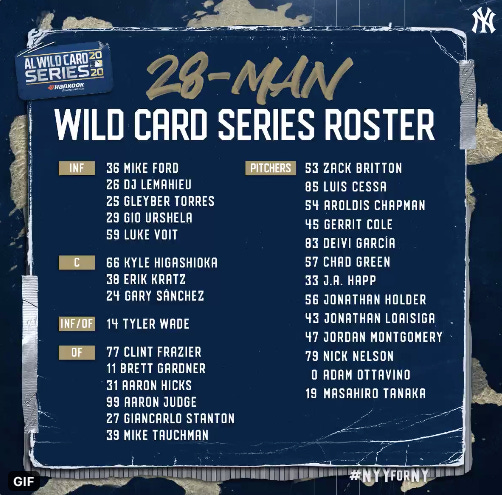 Yankees announce 28-man Wild Card roster