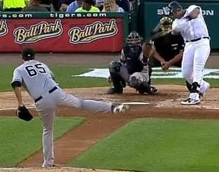 Phil Hughes struggles were in his pitch count. A 42-pitch 4th inning gave the Tigers 2 runs, including one by Miguel Cabrera hitting a lead off home run as he continues to have a good handle of the New York Yankees. Cabrera would also be the last batter that Hughes would see as his 102nd pitch of the game was drilled into left field for a two-run double. In Cody Eppley's 1.2 innings of work, he served up a double to deep right field off the wall for a run by outfielder Andy Dirks. Then in the 8th inning, with the Yankees trailing by 2, Andy Dirks would come through against Joba Chamberlain to put the Tigers ahead by 3 and would prove to be a very important run in tonight's game.
