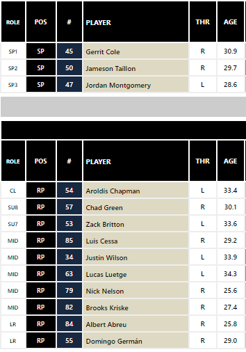 Speaking of 100 years ago, a three-man rotation would've been perfectly acceptable in 1921. The Yankees lost that best-of-nine World Series in eight games, with Waite Hoyt and Carl Mays starting six of them. In the present day, it's basically a shrug emoji that says, "We have no idea who's starting next." Gerrit Cole, Jameson Taillon, and Jordan Montgomery in the rotation are to be expected. Domingo Germán is the only other active pitcher who has been a starter this year. He threw 17 pitches in relief on Friday, but with an off-day Monday, he could still rejoin the rotation on Tuesday or Wednesday. Bear in mind, he lost his starting gig for a reason though.