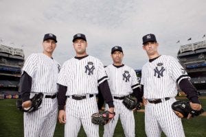 This marked the final postseason run with the "Core Four" intact, as Pettitte would retire for the first time after the season. Coming off a World Series, Joe Girardi's squad earned the AL Wild Card at 95-67. Robinson Cano topped the squad with an 8.1 WAR, 141 OPS+ and socked 29 bombs for good measure. Brett Gardner posted a .383 OBP. Mark Teixeira (33) and Alex Rodriguez (30) each reached 30 home runs. CC Sabathia anchored the pitching staff with a 4.7 WAR, 21 victories, a 3.54 FIP and a 3.18 ERA. New York swept (3-0) the Minnesota Twins in the ALDS but fell to the Texas Rangers (4-2) in the ALCS.