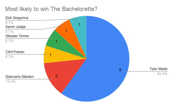 When I wrote this question my mind immediately went to Tyler Wade. It seems like the BP Team agrees as T-Wade runs away with this one. I just want to make it known that I would definitely watch the Bachelorette if all the contestants were Yankees players.