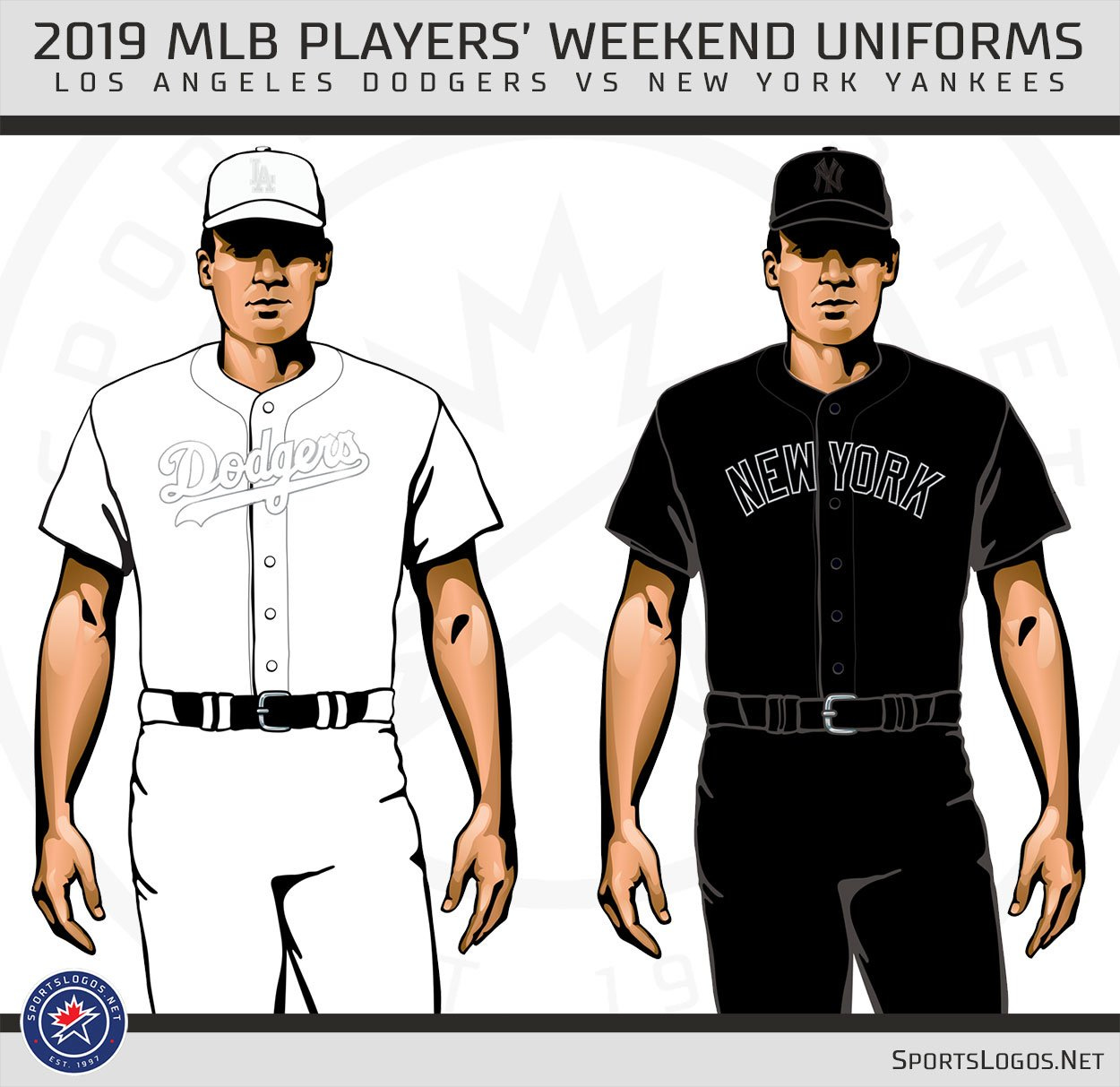 The home teams this season will wear predominantly white jerseys while the away teams will wear predominantly black jerseys. Given the Yankees will be in Los Angeles for a three-game series against the Dodgers, the Bronx Bombers will don all black for the first time in team history.