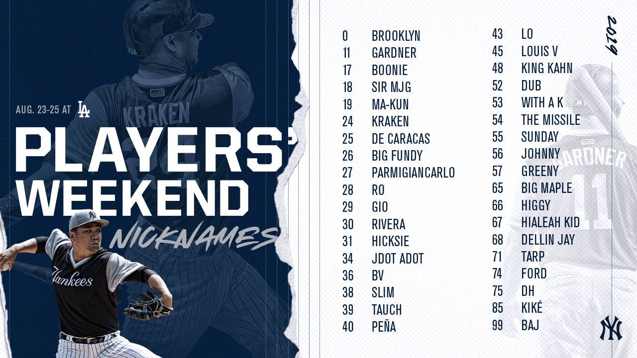 New York Yankees Players' Weekend nicknames. Credit: @Yankees on Twitter