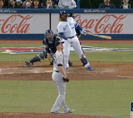 What happened from that point forward? It was not a foreshadowing of any demise. It did not begin a small lull. Britton put that one bad outing away and demonstrated the kind of dominant streak we last saw in Baltimore. This is what he did the rest of the way after Vladdy got him. Other than his FIP, he showed elite stuff: 34.0 IP 1.06 ERA 3.80 FIP .149 Opponent AVG .281 OBP .202 SLG 92.9% Left On Base % 25.3% Hard Hit %